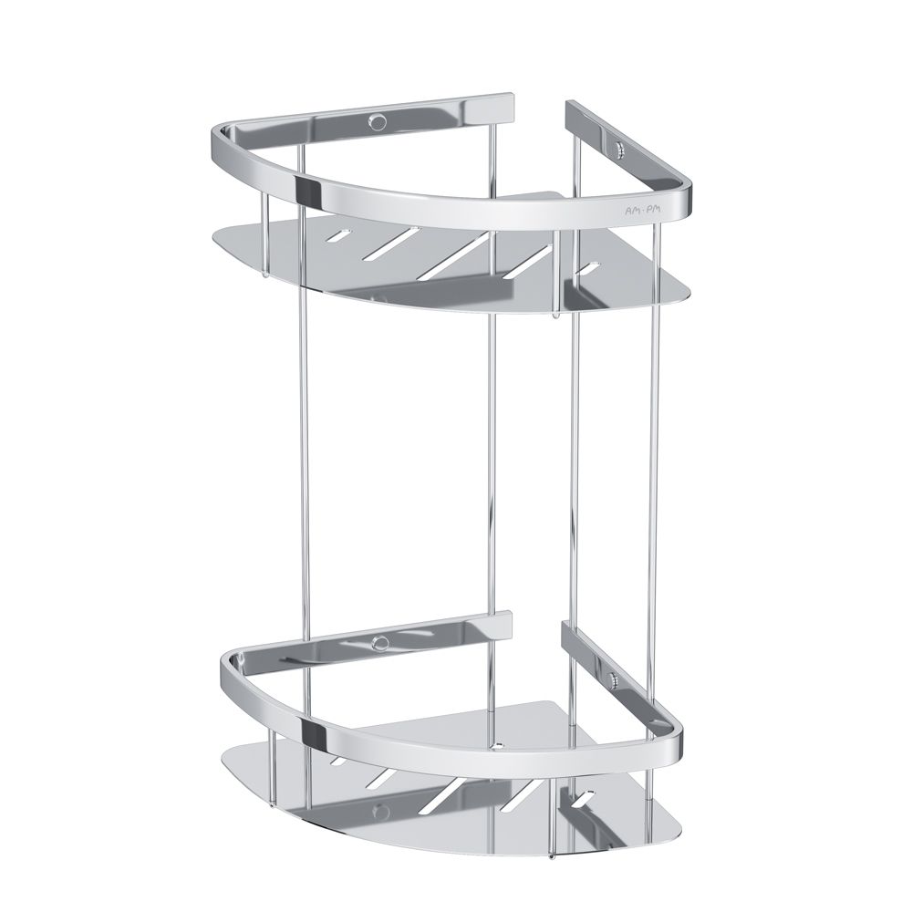 Полка-корзина AM.PM Sense L A7454200 угловая, двойная. Разумное использование пространства: угловые корзины Sense L не занимают много места, при этом позволяя разместить самые необходимые гигиенические и косметические принадлежности под рукой. Бескомпромиссное качество: корзины Sense L выполнены из качественной нержавеющей стали марки AISI 304 класса А. Устойчивость к повреждениям: материал изготовления имеет высокое сопротивление окислению и не подвержен коррозии даже в агрессивных средах соленой, пресной или водопроводной воды. Универсальный дизайн: аксессуары АМ.РМ коллекции Sense L спроектированы личной дизайн-студией бренда таким образом, чтобы органично вписываться в любой интерьер.