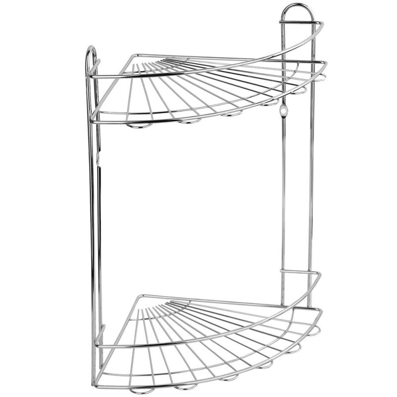 Полка-корзина Fora Romia KOR-2009 двойная, угловая - изделие изготовлено из хромированного металла, устойчивого к появлению коррозии.