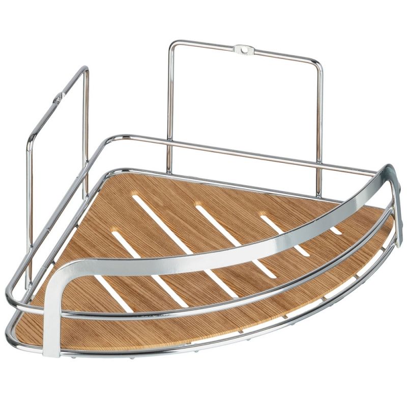 Полка-корзина Fora Wood FOR-WOD01-U угловая - изделие изготовлено из хромированного железа, устойчивого к появлению коррозии, и имеет пластиковую вставку, имитирующую дерево. Вставку можно снять, что облегчает уход за изделием.