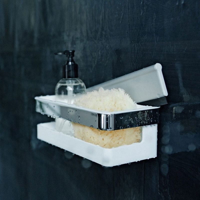 Состоит из 2-х частей: металлическая корзинка и вынимающаяся, небьющаяся, стойкая к мыльному налету и невосприимчивая к воздействию ультрафиолетовых лучей, пластиковая вставка.