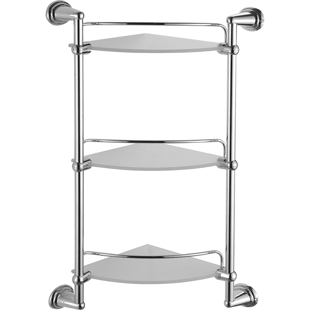 полка настенная угловая трёхъярусная со стеклянными матовыми поверхностями, H =630 мм (Н между полок=230 мм), L=290 мм