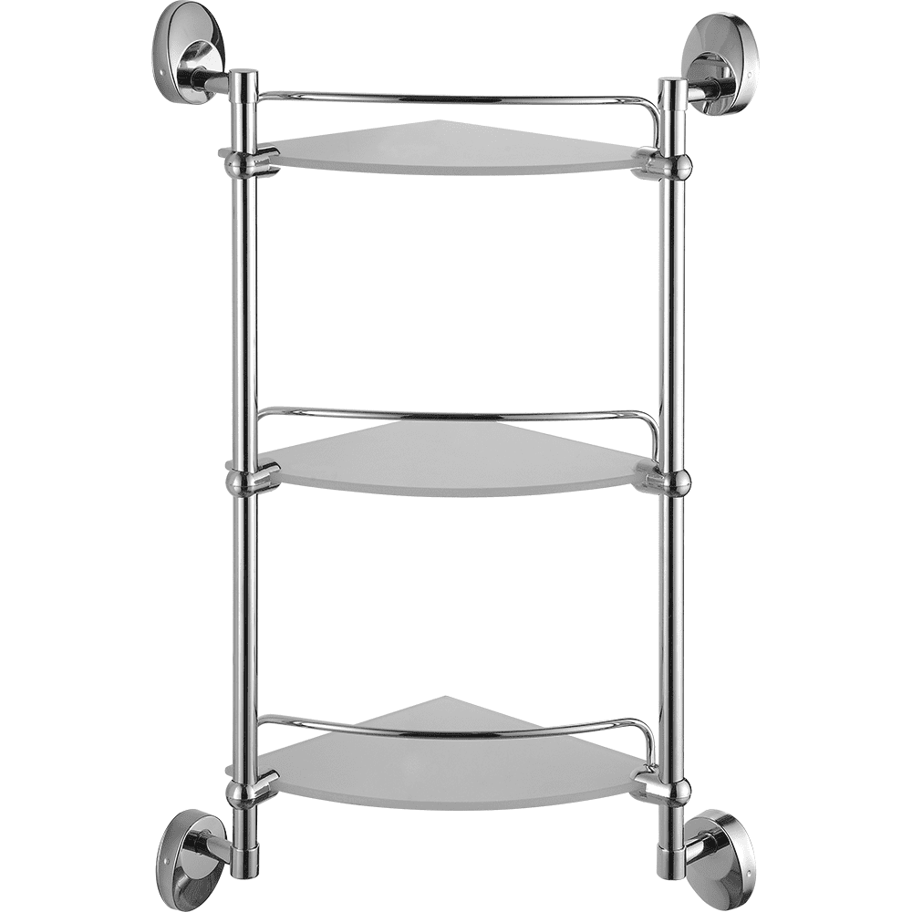 полка настенная угловая трёхъярусная со стеклянными матовыми поверхностями, H=630 мм (Н между полок =230 мм), L=290 мм
