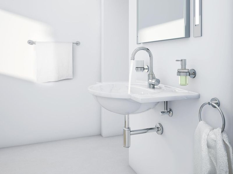 Держатель для полотенца больших размеров GROHE Essentials может вмещать полотенца до 800 мм шириной. Минималистичный дизайн и функциональность в тоже время, выполнен в износостойком хромовом покрытии, и с элегантным блеском.