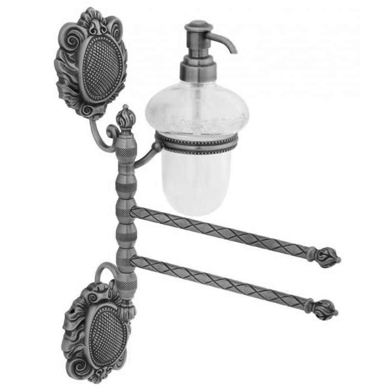 Полотенцедержатель двойной поворотный длиной 20 см Migliore Cleopatra ML.CLE-60.718 CR, с дозатором жидкого мыла, стекло прозрачное с матовым декором. Цвет хром.