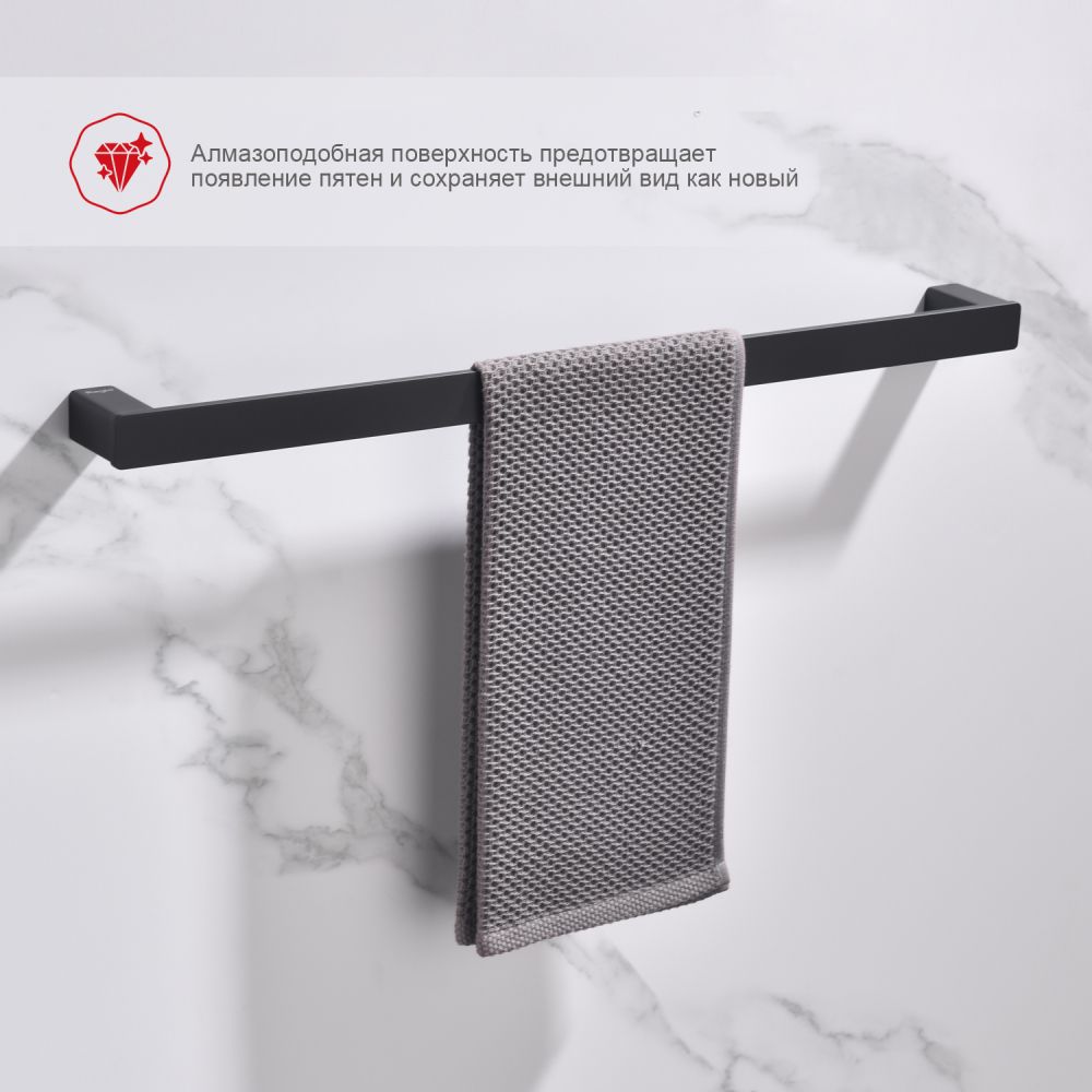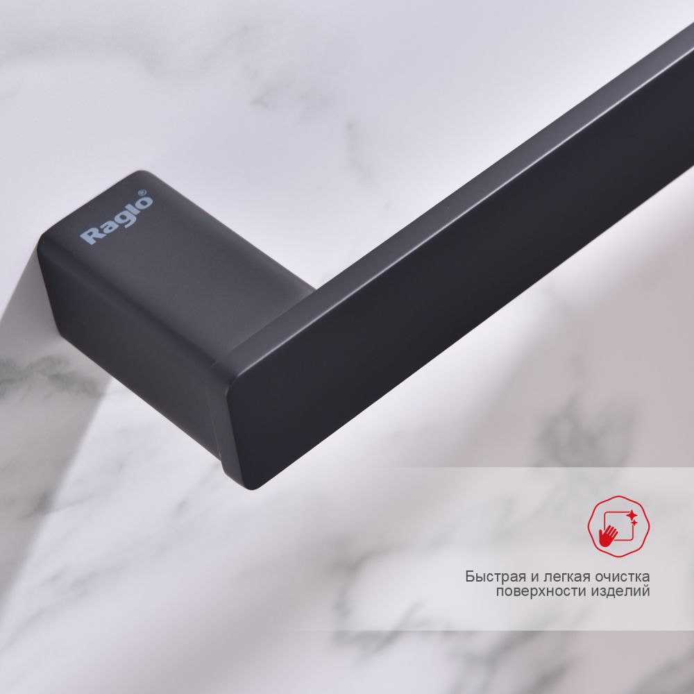 Raglo R301.01.06 Полотенцедержатель. Форма квадратная, цвет - черный, полуматовое покрытие. Комплект крепежа есть. 60 см