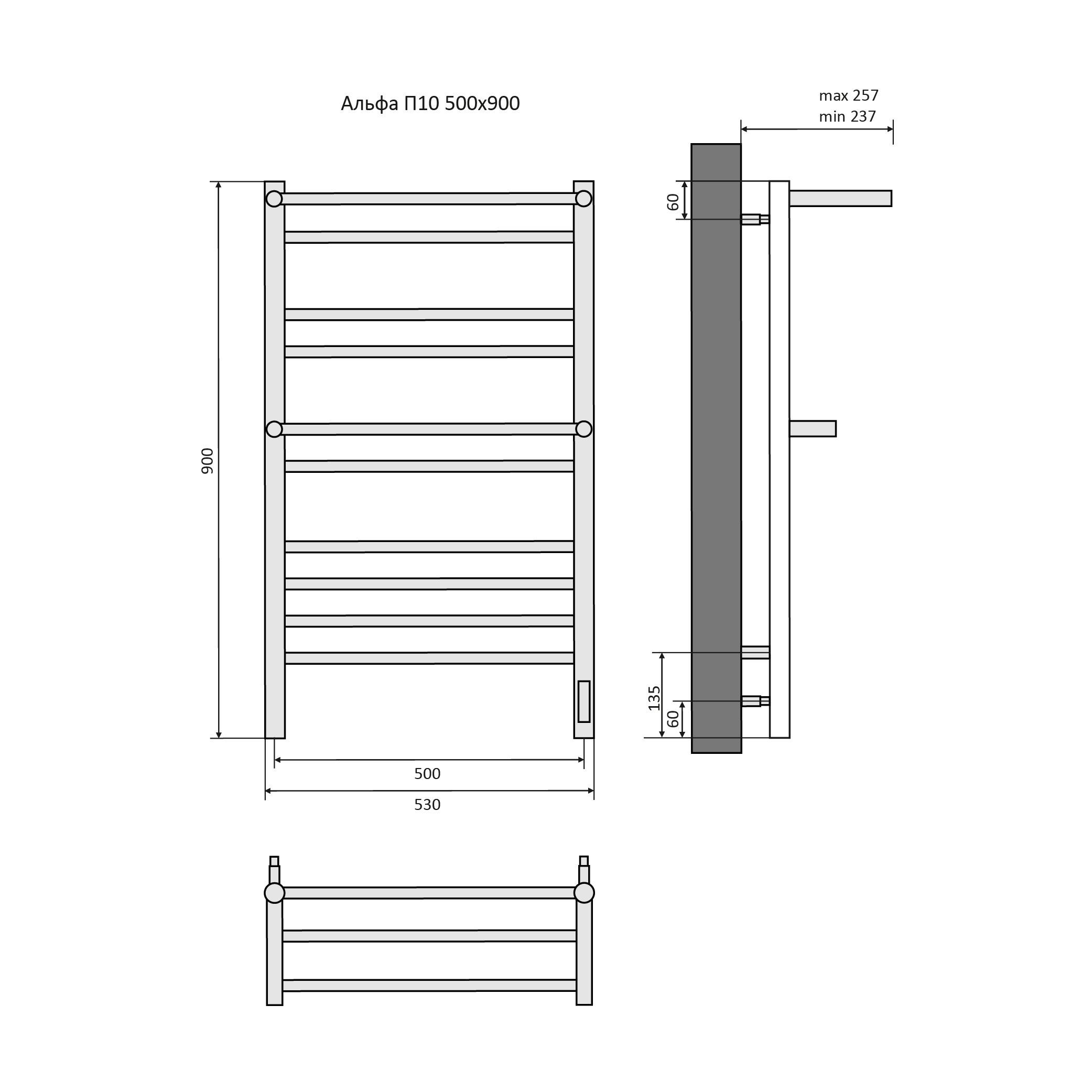 полотенцесушитель; съемная кабель-вилка (длина 1,2м); втулки-переходники для подключения 2 шт; крепления у стене 4шт; шестигранный ключ 1 шт |