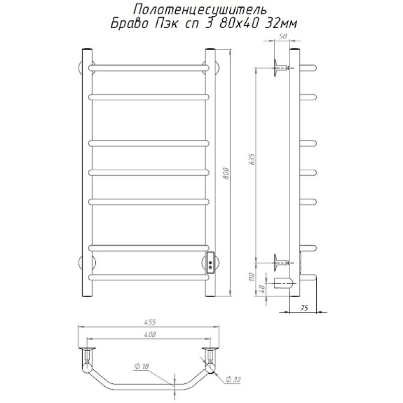 Полотенцесушитель Браво Пэк сп 3 80х40 32 мм. Коллекция: Браво Пэк сп серия 3. Тип: электрический. Форма: лесенка. Мощность (Вт): не более 100Вт. Количество перекладин: 7. Материал: нержавеющая сталь AISI 201. Подключение: скрытое электрическое соединение/электропровод с вилкой.