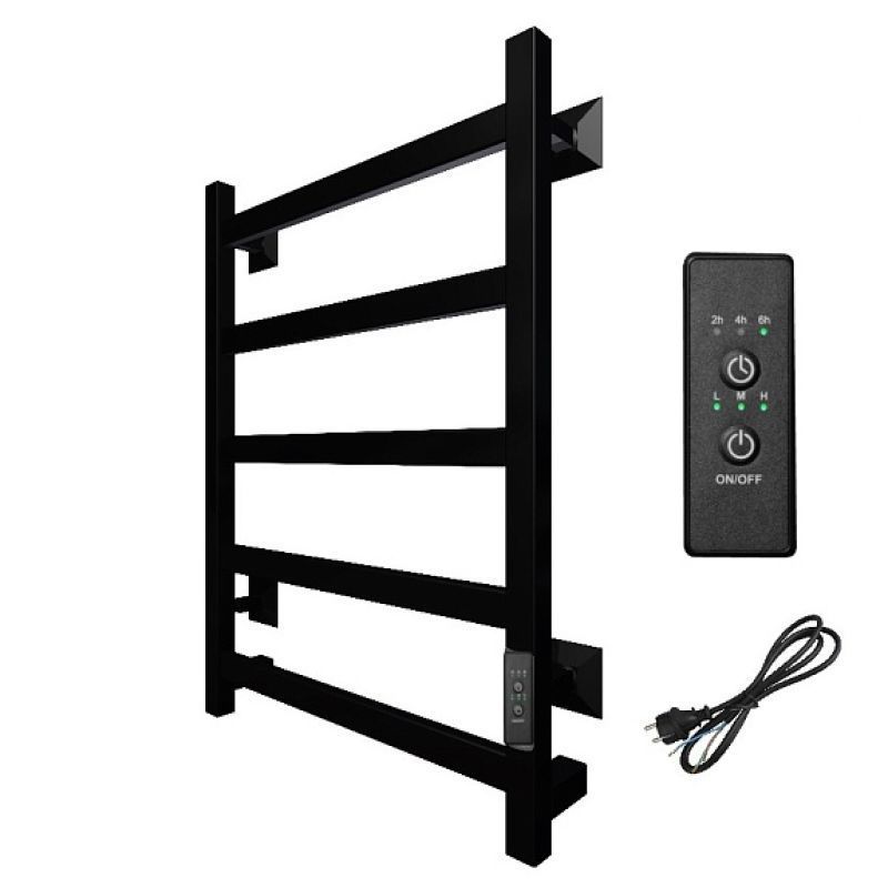 Полотенцесушитель Пэк сп 20 кв 60х40 черный ВГП. Коллекция: ПЭК сп 20. Тип: электрический. Форма: лесенка. Мощность (Вт): не более 100Вт. Количество перекладин: 5. Материал: сталь. Подключение: скрытое электрическое соединение/электропровод с вилкой. Дополнительная информация: выключатель с таймером на 2, 4 и 6 часов работы и терморегулятором встроен в коллектор полотенцесушителя.