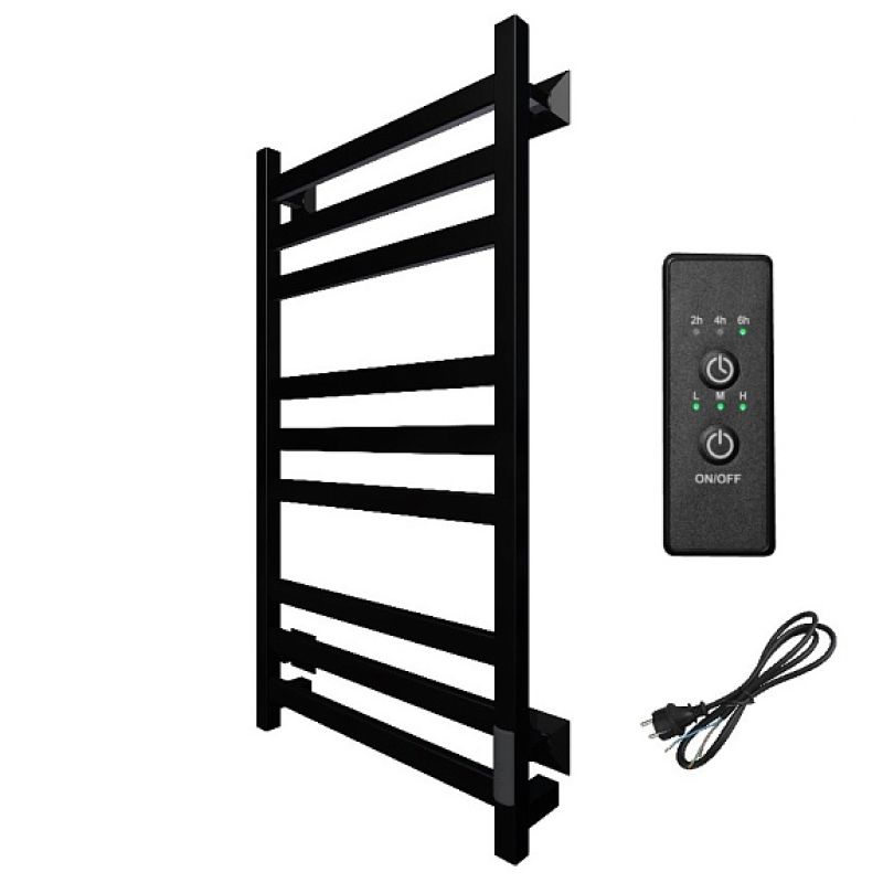 Полотенцесушитель Пэк сп 21 кв 80х50 черный ВГП. Коллекция: ПЭК сп 21. Тип: электрический. Форма: лесенка. Мощность (Вт): не более 100Вт. Количество перекладин: 9. Материал: сталь. Подключение: скрытое электрическое соединение/электропровод с вилкой. Дополнительная информация: выключатель с таймером на 2, 4 и 6 часов работы и терморегулятором встроен в коллектор полотенцесушителя.