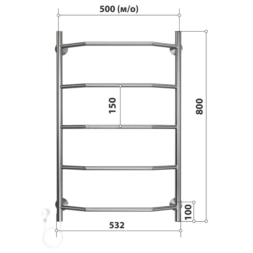 Полотенцесушитель электрический арт.: 4670078543233. Бренд: Stelmix. Тип подключения: слева. Материал: нержавеющая сталь. Теплоноситель: греющий кабель. Форма: лесенка.