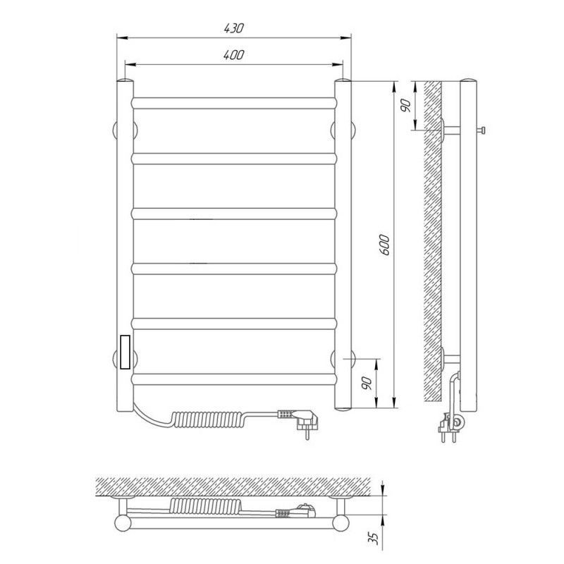 Электрический ПС изготовлен из нержавеющей стали AISI 304 с толщиной стенки 1,5 мм для обеспечения оптимальной температуры нагрева изделия. Диаметры: стойка Ø32, перемычка Ø20. Внутри установлен сухой ТЭН который обеспечивает экономию энергии, увеличивает срок службы изделия ( по сравнению с изделиями с жидкостным теплоносителем). ТЭН имеет 3 степени защиты-от пыли,влаги,перегрева-100% безопасность при эксплуатации! Высокое качество полировки и сварных швов. Гарантия 5 лет на изделие. Терморегулятор кнопочный на стойке с функцией таймера. Температура нагрева поверхности изделия 50-55C. Для скрытого подключения модуль скрытого подключения приобретается отдельно.
