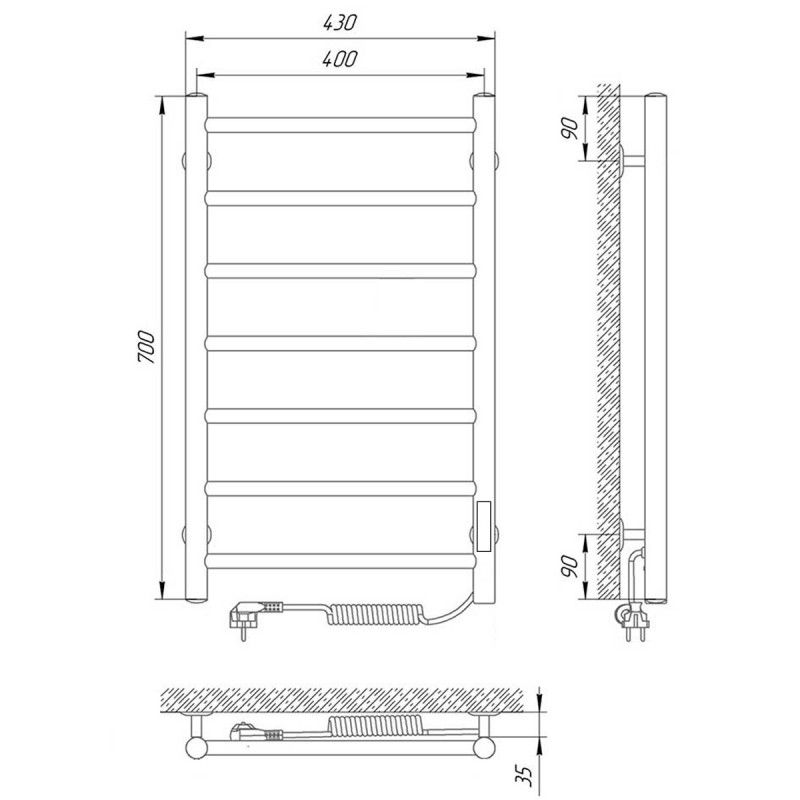 Электрический ПС изготовлен из нержавеющей стали AISI 304 с толщиной стенки 1,5 мм для обеспечения оптимальной температуры нагрева изделия. Диаметры: стойка Ø32, перемычка Ø20. Внутри установлен сухой ТЭН который обеспечивает экономию энергии, увеличивает срок службы изделия ( по сравнению с изделиями с жидкостным теплоносителем). ТЭН имеет 3 степени защиты-от пыли,влаги,перегрева-100% безопасность при эксплуатации! Высокое качество полировки и сварных швов. Гарантия 5 лет на изделие. Терморегулятор кнопочный на стойке с функцией таймера. Температура нагрева поверхности изделия 50-55C. Для скрытого подключения модуль скрытого подключения приобретается отдельно.