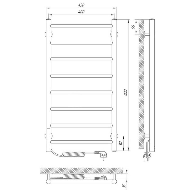 Электрический ПС изготовлен из нержавеющей стали AISI 304 с толщиной стенки 1,5 мм для обеспечения оптимальной температуры нагрева изделия. Диаметры: стойка Ø32, перемычка Ø20. Внутри установлен сухой ТЭН который обеспечивает экономию энергии, увеличивает срок службы изделия ( по сравнению с изделиями с жидкостным теплоносителем). ТЭН имеет 3 степени защиты-от пыли,влаги,перегрева-100% безопасность при эксплуатации! Высокое качество полировки и сварных швов. Гарантия 5 лет на изделие. Терморегулятор кнопочный на стойке с функцией таймера. Температура нагрева поверхности изделия 50-55C. Для скрытого подключения модуль скрытого подключения приобретается отдельно.