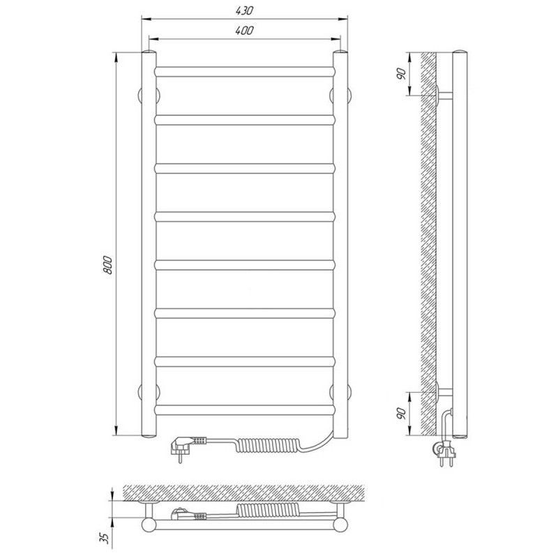 Электрический ПС изготовлен из нержавеющей стали AISI 304 с толщиной стенки 1,5 мм для обеспечения оптимальной температуры нагрева изделия. Диаметры: стойка Ø32, перемычка Ø20. Внутри установлен сухой ТЭН который обеспечивает экономию энергии, увеличивает срок службы изделия ( по сравнению с изделиями с жидкостным теплоносителем). ТЭН имеет 3 степени защиты-от пыли,влаги,перегрева-100% безопасность при эксплуатации! Высокое качество полировки и сварных швов. Гарантия 5 лет на изделие. Терморегулятор кнопочный на стойке с функцией таймера. Температура нагрева поверхности изделия 50-55C. Для скрытого подключения модуль скрытого подключения приобретается отдельно.