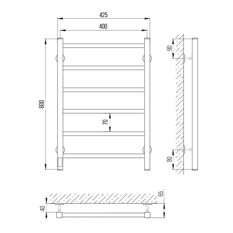 Температура поверхности изделия*: 50±5°C, размещение регулятора на стойке, модуль скрытого монтажа в комплекте