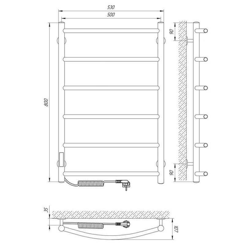 Электрический ПС изготовлен из нержавеющей стали AISI 304 с толщиной стенки 1,5 мм для обеспечения оптимальной температуры нагрева изделия. Диаметры: стойка Ø32, перемычка Ø20. Внутри установлен сухой ТЭН который обеспечивает экономию энергии, увеличивает срок службы изделия ( по сравнению с изделиями с жидкостным теплоносителем). ТЭН имеет 3 степени защиты-от пыли,влаги,перегрева-100% безопасность при эксплуатации! Высокое качество полировки и сварных швов. Гарантия 5 лет на изделие. Терморегулятор кнопочный на стойке с функцией таймера. Температура нагрева поверхности изделия 50-55C. Для скрытого подключения модуль скрытого подключения приобретается отдельно.