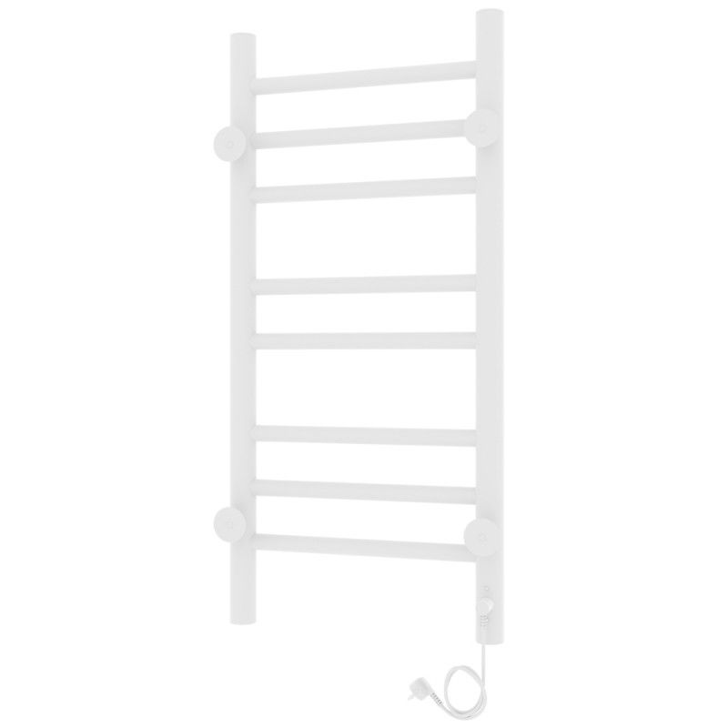 Электрический ПС изготовлен из конструкционной стали с толщиной стенки 1,5 мм для обеспечения оптимальной температуры нагрева изделия. Диаметры: стойка Ø32; перемычка Ø20. Внутри установлен сухой ТЭН который обеспечивает экономию энергии,увеличивает срок службы изделия ( по сравнению с изделиями с жидкостным теплоносителем). ТЭН имеет 3 степени защиты-от пыли,влаги,перегрева-100% безопасность при эксплуатации! Гарантия 5 лет на изделие и лакокрасочное покрытие. Краска порошковая белая - матовая (муар) RAL 9016 с фосфотирующей основой. Терморегулятор кнопочный на стойке с функцией таймера. Температура нагрева поверхности изделия 50-55C. Для скрытого подключения изделие укомплектовано модулем скрытого подключения.