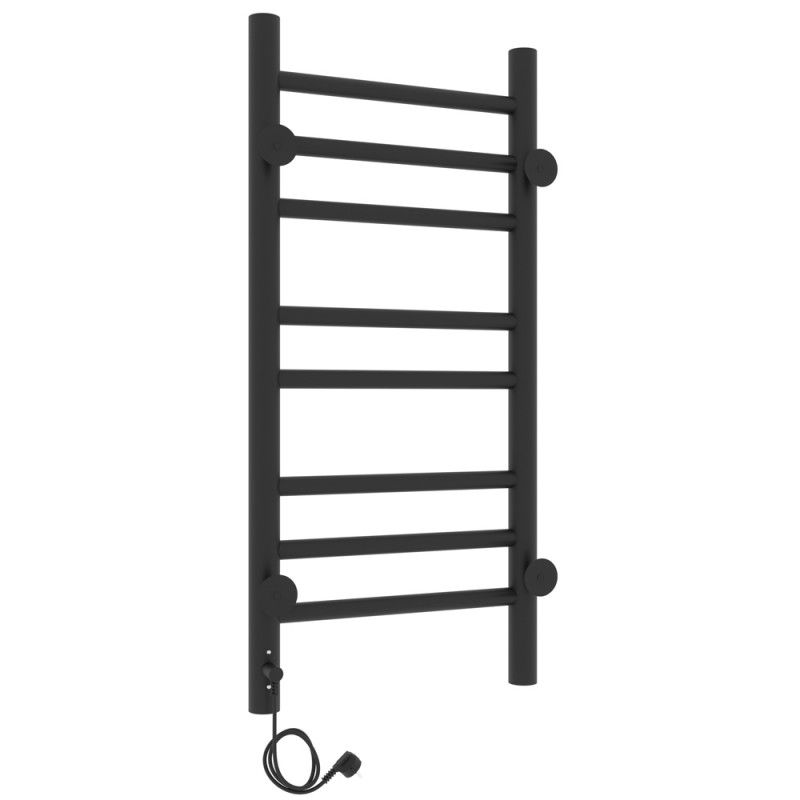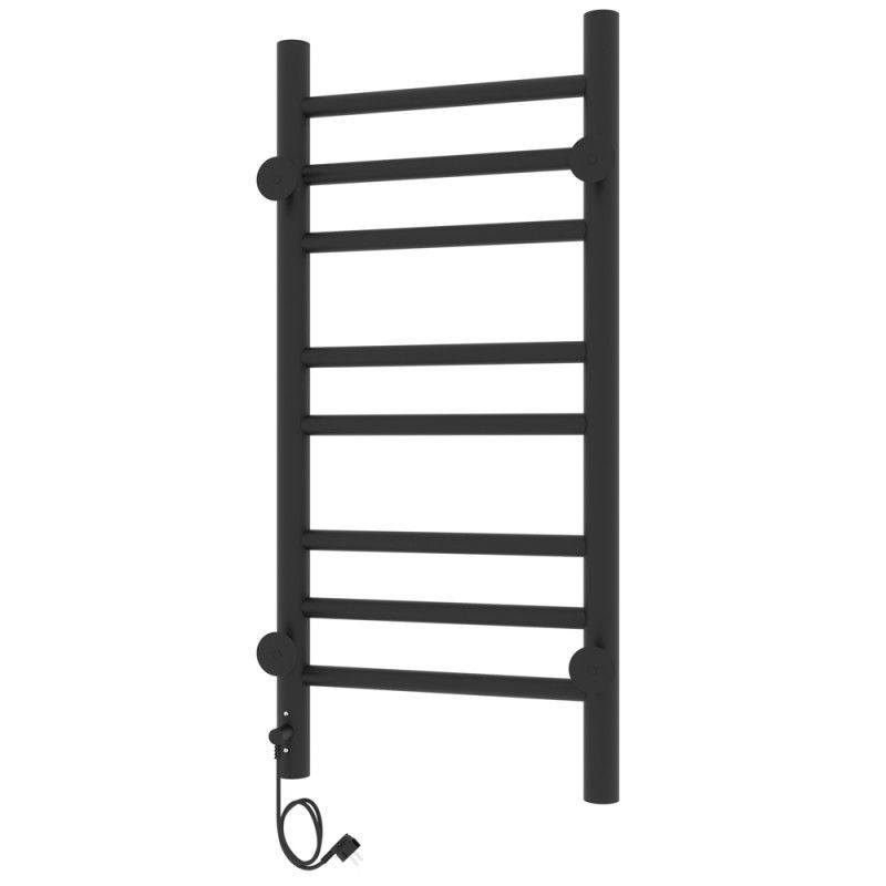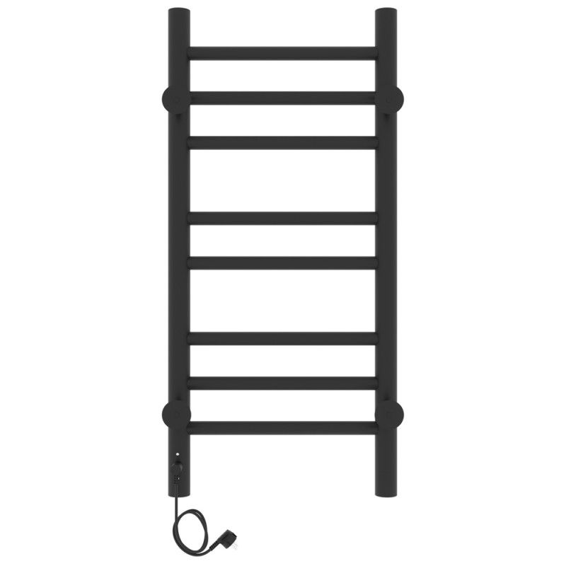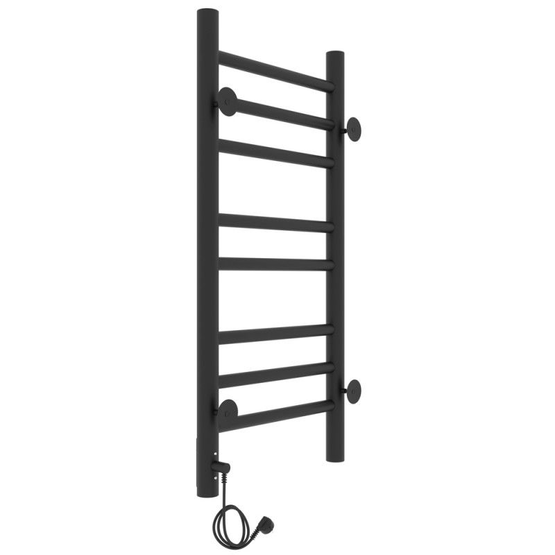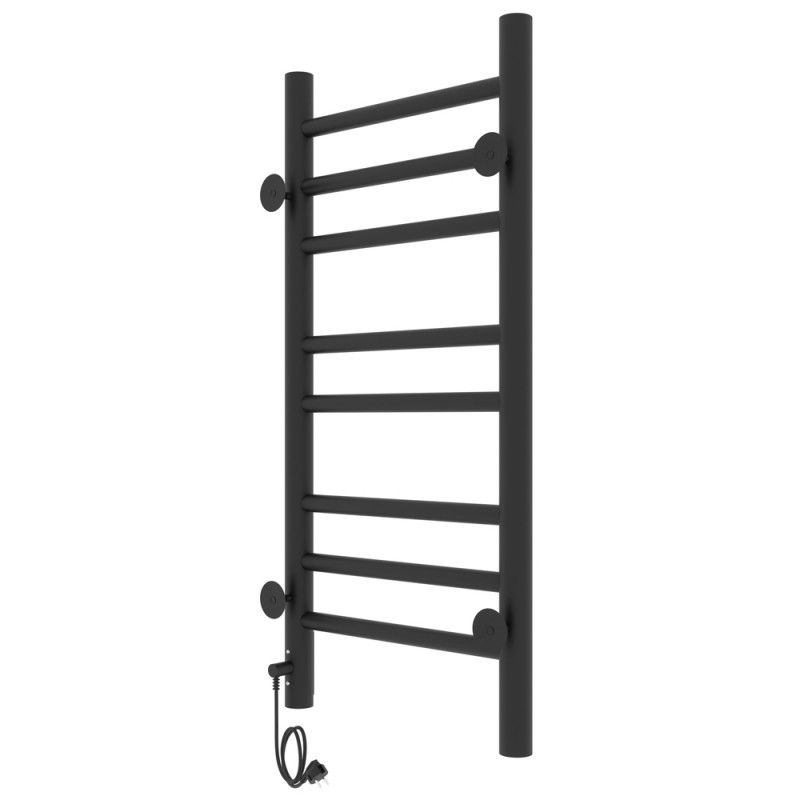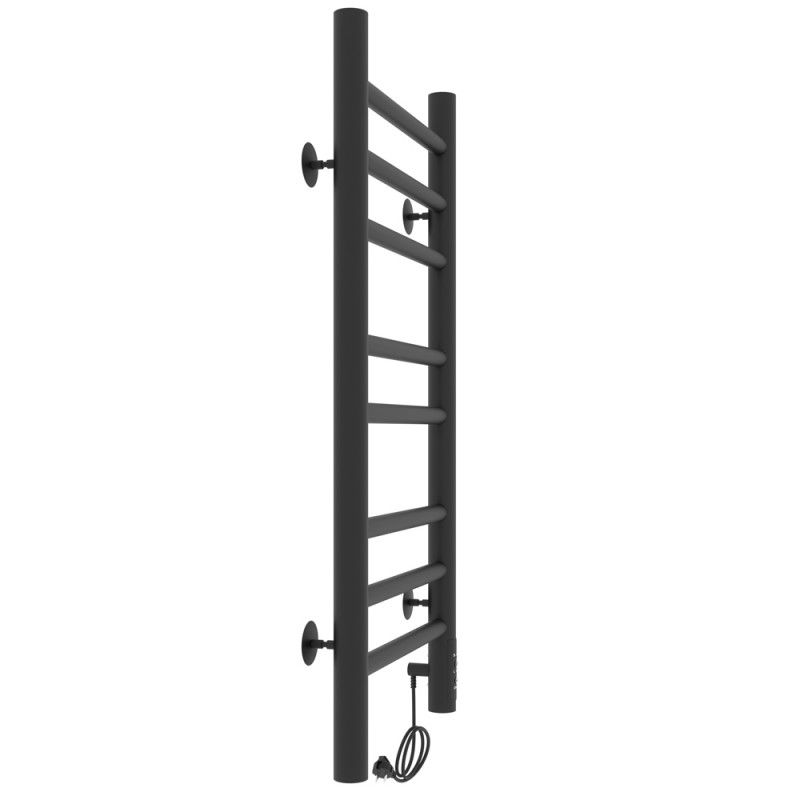 Электрический ПС изготовлен из конструкционной стали с толщиной стенки 1,5 мм для обеспечения оптимальной температуры нагрева изделия. Диаметры: стойка Ø32; перемычка Ø20. Внутри установлен сухой ТЭН который обеспечивает экономию энергии,увеличивает срок службы изделия ( по сравнению с изделиями с жидкостным теплоносителем). ТЭН имеет 3 степени защиты-от пыли,влаги,перегрева-100% безопасность при эксплуатации! Гарантия 5 лет на изделие и лакокрасочное покрытие. Краска порошковая черная - матовая (муар) RAL 9005 с фосфотирующей основой. Терморегулятор кнопочный на стойке с функцией таймера. Температура нагрева поверхности изделия 50-55C. Для скрытого подключения изделие укомплектовано модулем скрытого подключения.