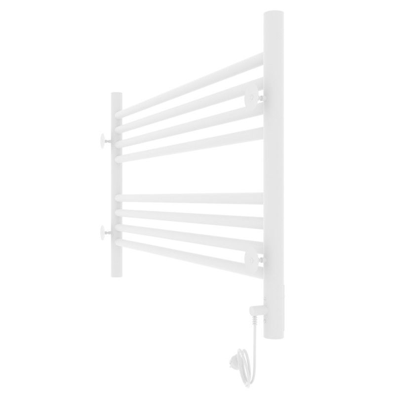 Электрический ПС изготовлен из конструкционной стали с толщиной стенки 1,5 мм для обеспечения оптимальной температуры нагрева изделия. Диаметры: стойка Ø32; перемычка Ø20. Внутри установлен сухой ТЭН который обеспечивает экономию энергии,увеличивает срок службы изделия ( по сравнению с изделиями с жидкостным теплоносителем). ТЭН имеет 3 степени защиты-от пыли,влаги,перегрева-100% безопасность при эксплуатации! Гарантия 5 лет на изделие и лакокрасочное покрытие. Краска порошковая белая - матовая (муар) RAL 9016 с фосфотирующей основой. Терморегулятор кнопочный на стойке с функцией таймера. Температура нагрева поверхности изделия 50-55C. Для скрытого подключения изделие укомплектовано модулем скрытого подключения.