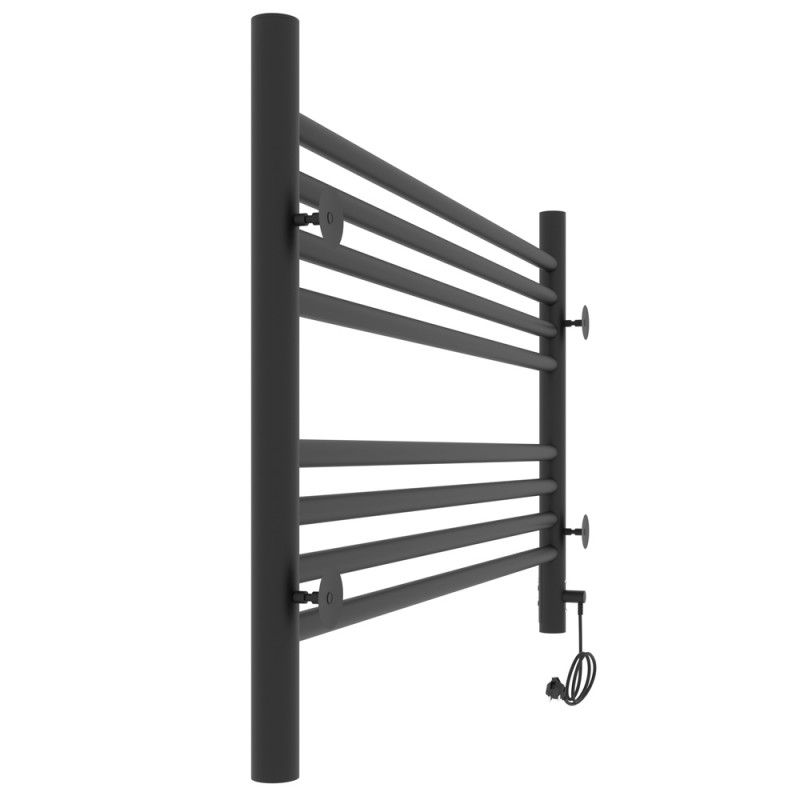 Электрический ПС изготовлен из конструкционной стали с толщиной стенки 1,5 мм для обеспечения оптимальной температуры нагрева изделия. Диаметры: стойка Ø32; перемычка Ø20. Внутри установлен сухой ТЭН который обеспечивает экономию энергии,увеличивает срок службы изделия ( по сравнению с изделиями с жидкостным теплоносителем). ТЭН имеет 3 степени защиты-от пыли,влаги,перегрева-100% безопасность при эксплуатации! Гарантия 5 лет на изделие и лакокрасочное покрытие. Краска порошковая черная - матовая (муар) RAL 9005 с фосфотирующей основой. Терморегулятор кнопочный на стойке с функцией таймера. Температура нагрева поверхности изделия 50-55C. Для скрытого подключения изделие укомплектовано модулем скрытого подключения.