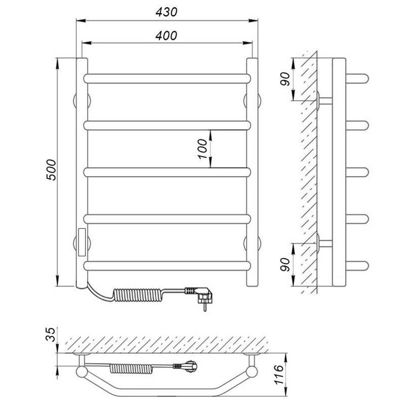 Электрический ПС изготовлен из нержавеющей стали AISI 304 с толщиной стенки 1,5 мм для обеспечения оптимальной температуры нагрева изделия. Диаметры: стойка Ø32, перемычка Ø20. Внутри установлен сухой ТЭН который обеспечивает экономию энергии, увеличивает срок службы изделия ( по сравнению с изделиями с жидкостным теплоносителем). ТЭН имеет 3 степени защиты-от пыли,влаги,перегрева-100% безопасность при эксплуатации! Высокое качество полировки и сварных швов. Гарантия 5 лет на изделие. Терморегулятор кнопочный на стойке с функцией таймера. Температура нагрева поверхности изделия 50-55C. Для скрытого подключения модуль скрытого подключения приобретается отдельно.