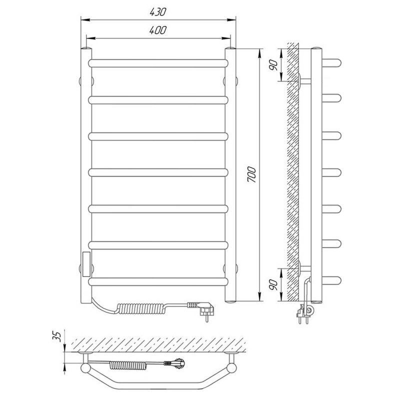 Электрический ПС изготовлен из нержавеющей стали AISI 304 с толщиной стенки 1,5 мм для обеспечения оптимальной температуры нагрева изделия. Диаметры: стойка Ø32, перемычка Ø20. Внутри установлен сухой ТЭН который обеспечивает экономию энергии, увеличивает срок службы изделия ( по сравнению с изделиями с жидкостным теплоносителем). ТЭН имеет 3 степени защиты-от пыли,влаги,перегрева-100% безопасность при эксплуатации! Высокое качество полировки и сварных швов. Гарантия 5 лет на изделие. Терморегулятор кнопочный на стойке с функцией таймера. Температура нагрева поверхности изделия 50-55C. Для скрытого подключения модуль скрытого подключения приобретается отдельно.