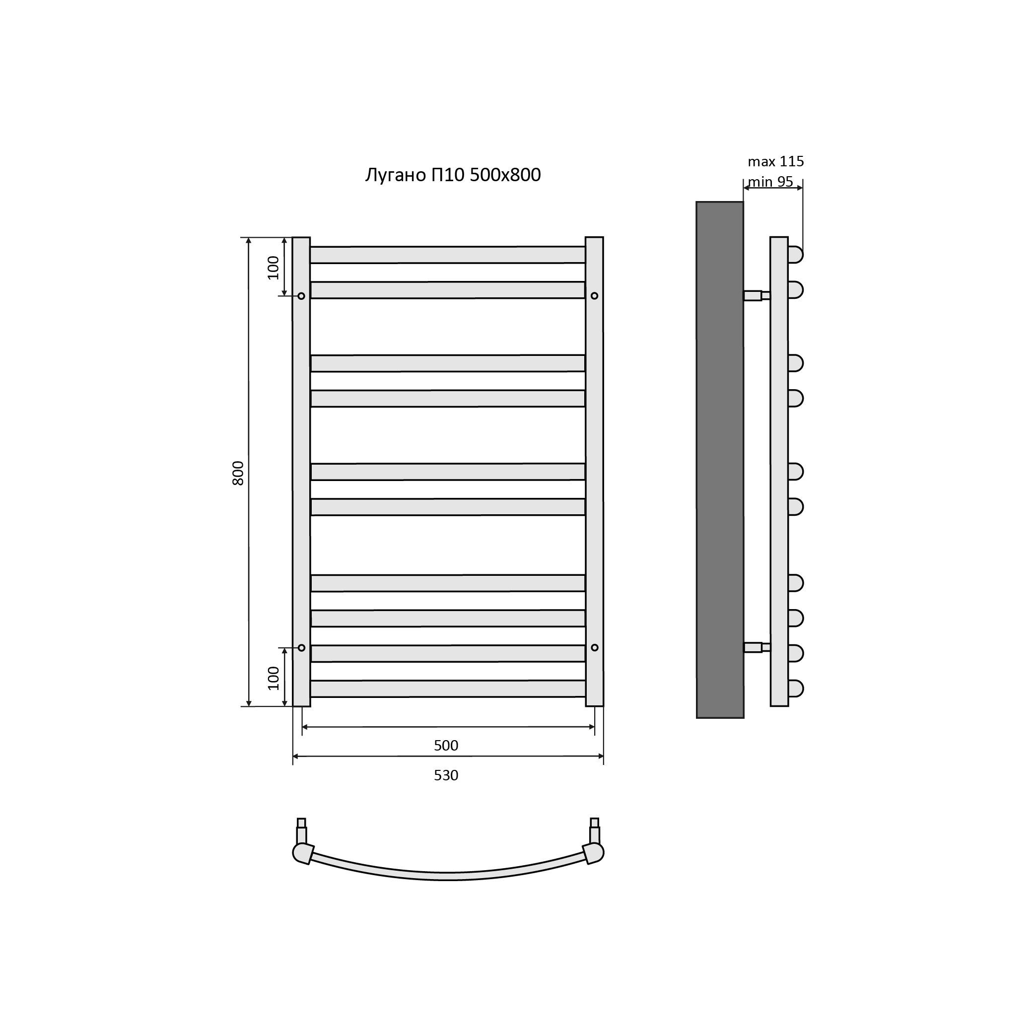полотенцесушитель; заглушка с воздухоотводом 1 шт; заглушка плоская 1 шт; крепления у стене 4 шт; шестигранный ключ 1 шт; дополнительно необходимо приобрести фитинги для установки полотенцесушителя (комплект вентилей 2шт, или комплект угловых соединений со сгоном 2шт, декоративные отражатели 2 шт); Рекомендован к приобретению один из вариантов комплекта для подключения Aquatek. |
