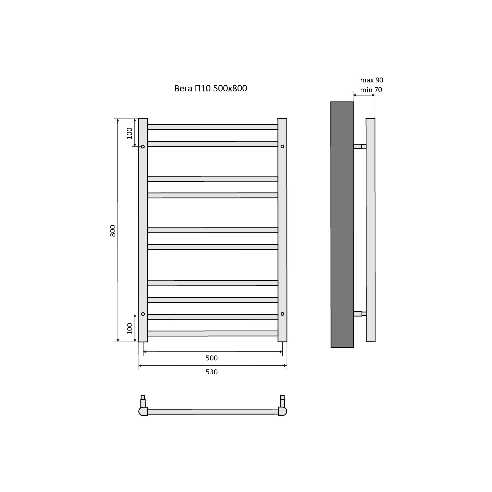 полотенцесушитель; заглушка с воздухоотводом 1 шт; заглушка плоская 1 шт; крепления у стене 4 шт; шестигранный ключ 1 шт; дополнительно необходимо приобрести фитинги для установки полотенцесушителя (комплект вентилей 2шт, или комплект угловых соединений со сгоном 2шт, декоративные отражатели 2 шт); Рекомендован к приобретению один из вариантов комплекта для подключения Aquatek. |