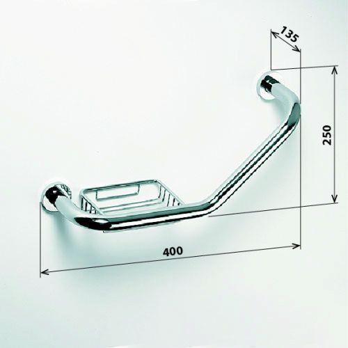 Поручень для ванной Bemeta Omega 102307032 изогнутый с мыльницей 400 мм. Цвет хром.