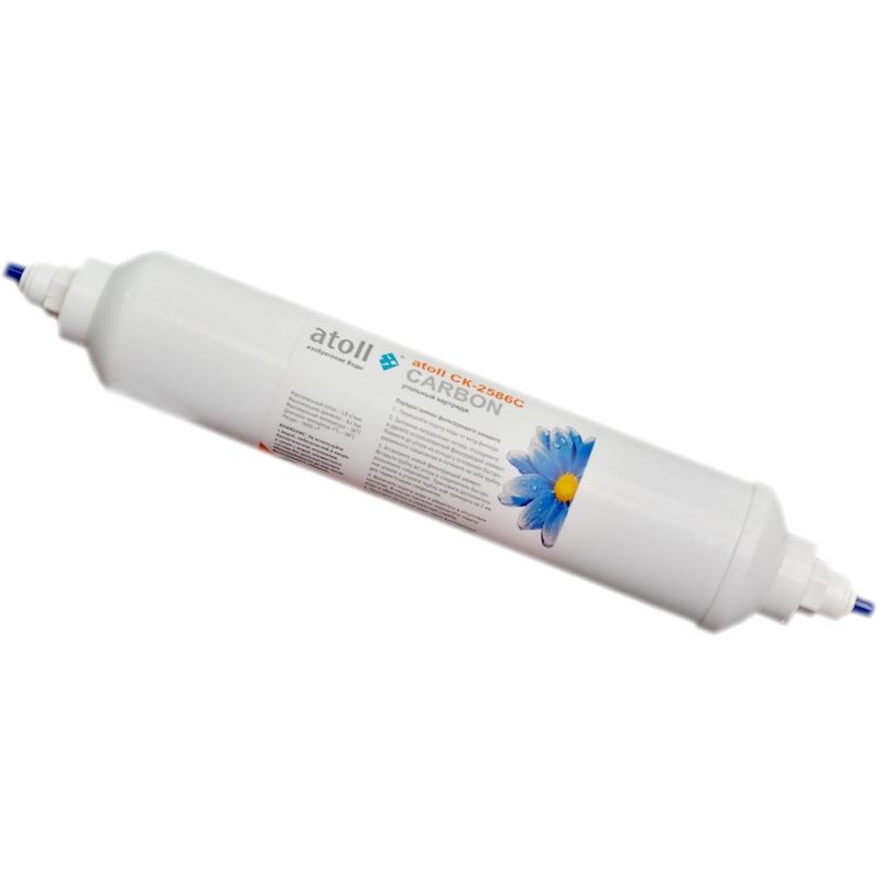 Сменный постфильтр Atoll CK-2586C для финишной очистки воды в системах обратного осмоса. Предназначен для холодной воды, поступающей из бака в питьевой фильтр, поглощает остаточные запахи и загрязнения, дехлорирует воду и очищает ее от органических примесей.