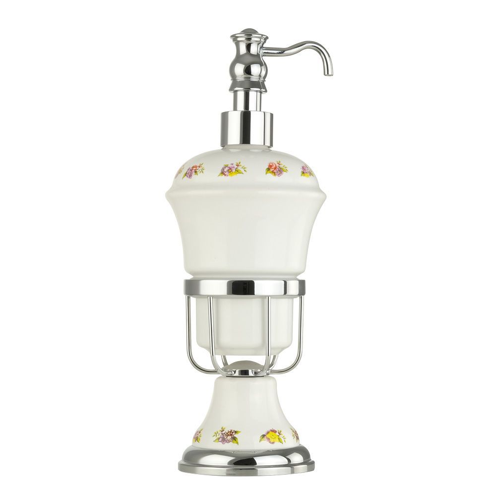 Аксессуары коллекции PROVANCE бренда MIGLIORE имеют нежный цветочный декор на керамике и создают уют в ванной комнате в классическом или рустикальном стиле. Дозатор жидкого мыла настольный с керамической колбой коллекции PROVANCE - один из необходимых аксессуаров, который можно использовать в ванной комнате и на кухне для мыла или моющего средства. Высококачественная белая керамика легко моется, а нажимной механизм имеет эргономичный дизайн. Между керамикой и латунным кольцом имеется уплотнительное пластиковое кольцо, которое надежно удерживает колбу дозатора.