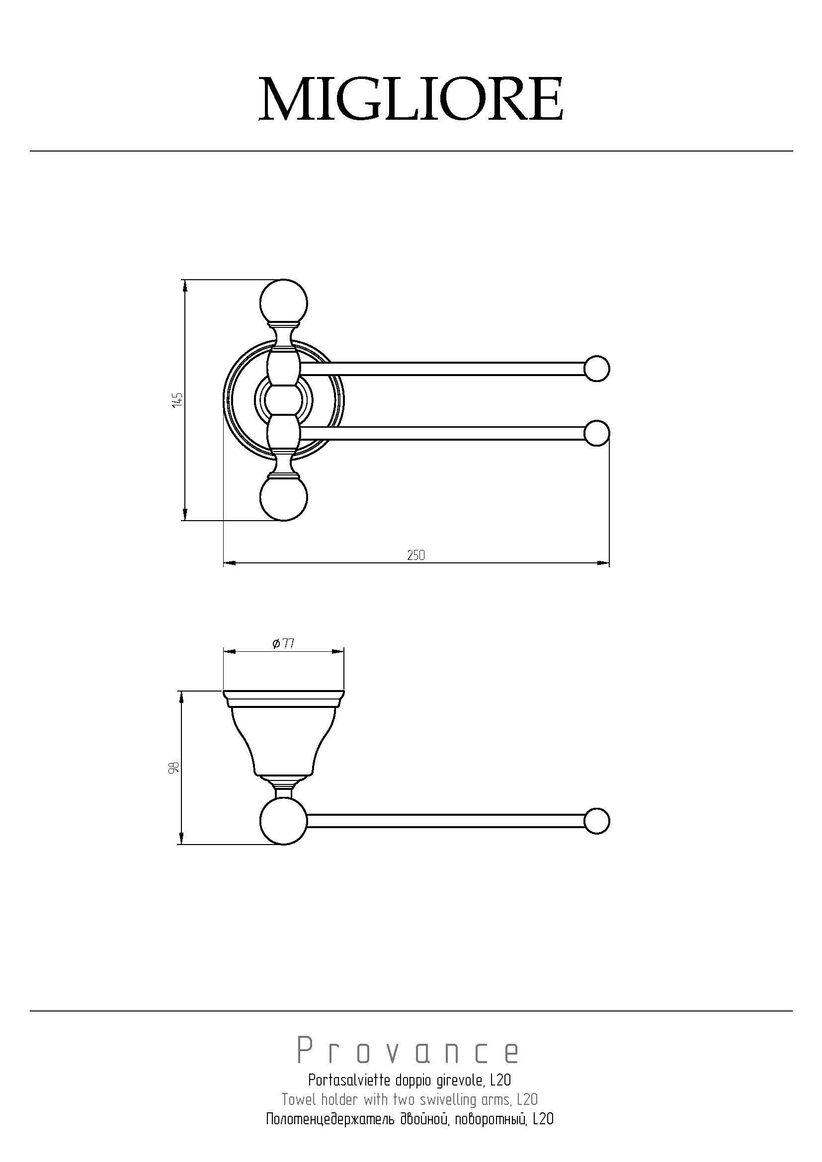 Аксессуары коллекции PROVANCE бренда MIGLIORE имеют нежный цветочный декор на керамике и создают уют в ванной комнате в классическом или рустикальном стиле. Полотенцедержатель двойной поворотный коллекции PROVANCE длиной 20 см очень удобен в использовании — для него достаточно небольшого пространства, и держатели можно развернуть в одну или другую сторону в зависимости от наличия места на стене.