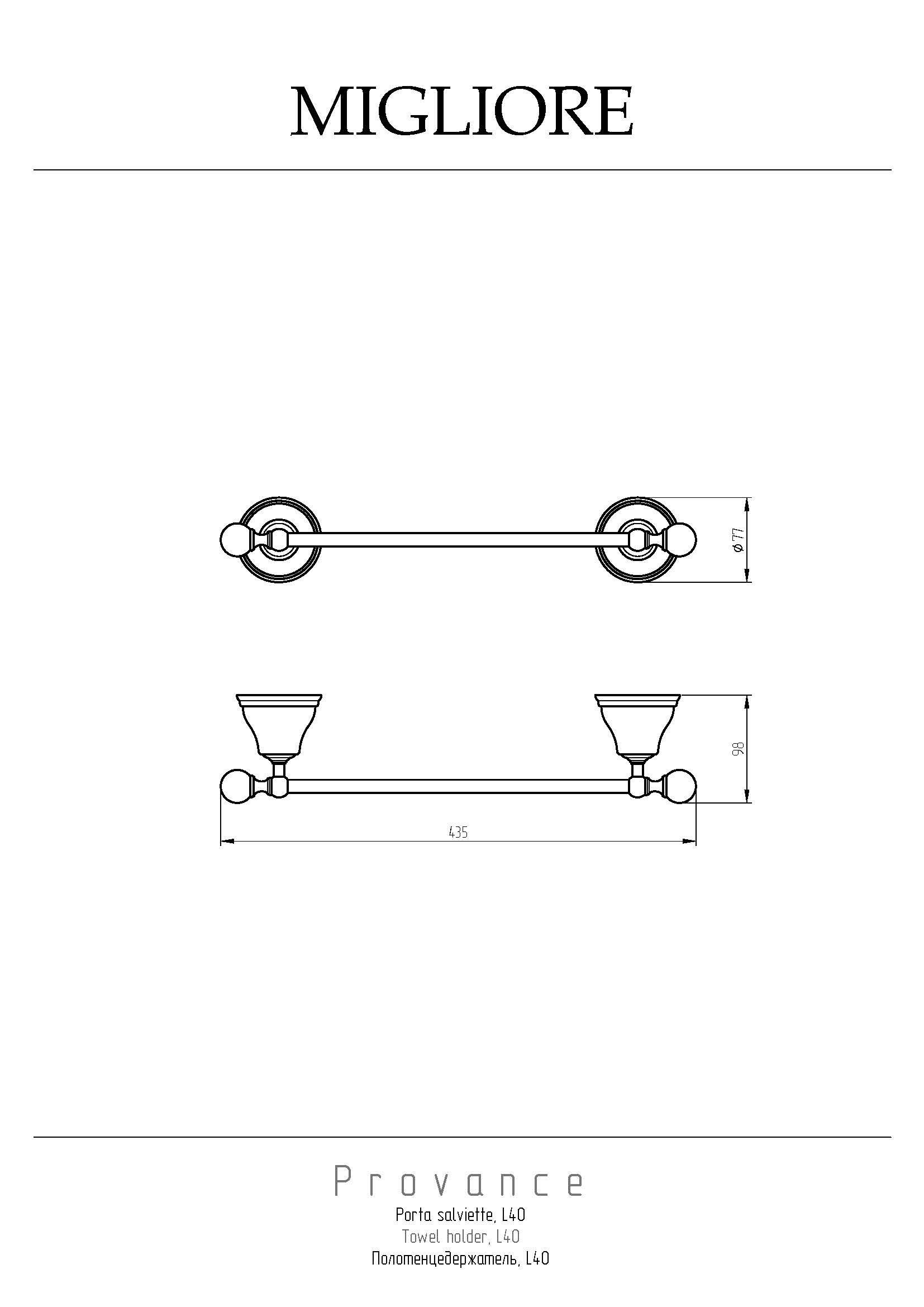 Аксессуары коллекции PROVANCE бренда MIGLIORE имеют нежный цветочный декор на керамике и создают уют в ванной комнате в классическом или рустикальном стиле. Полотенцедержатель коллекции PROVANCE - функциональный аксессуар для ванной комнаты. Его длина 40 см, что позволит разместить его даже на небольшом пространстве. Используется, как правило, для небольшого полотенца для рук или гигиены. Удобно разместить его рядом с биде.