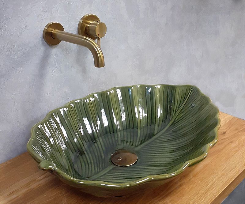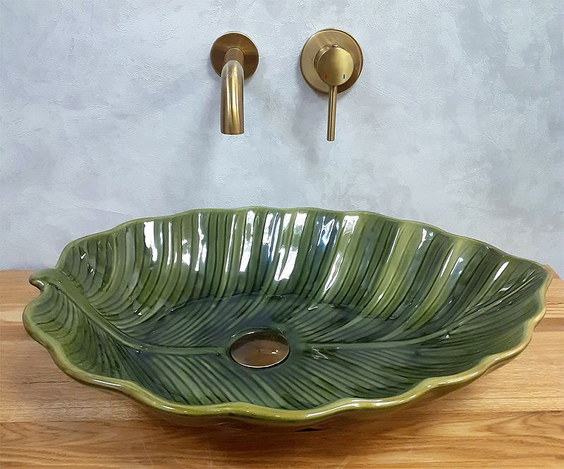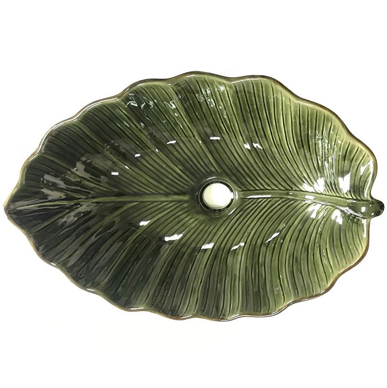 Раковина-чаша Bronze de Luxe Leaf 55 2430 в форме зеленого листа. Раковина ручной работы - удивительное сочетание линий, решений и идей.