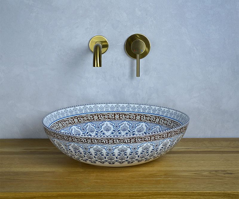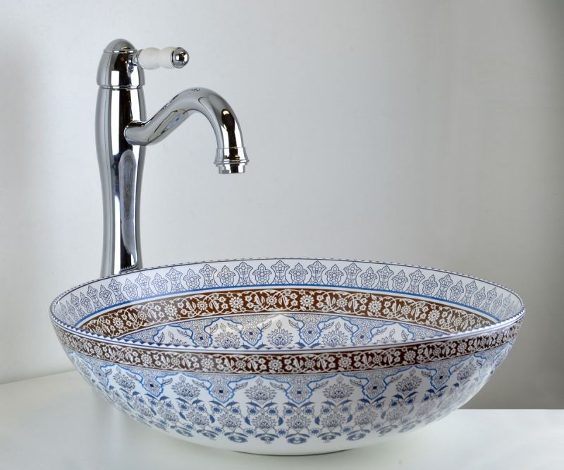 Раковина-чаша Bronze de Luxe Марракеш 40 1008. Раковина изготовлена из керамики белого цвета с голубым декором, устойчивой к механическим воздействиям и перепадам температур. Благодаря стильному дизайну накладная раковина отлично впишется в интерьер ванной комнаты в любом стилистическом оформлении.