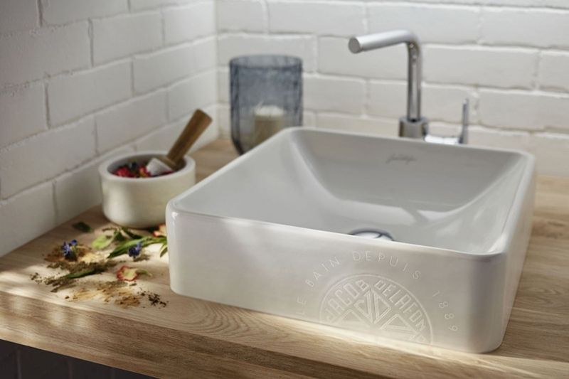 Квадратная накладная раковина-чаша Jacob Delafon Vox Signature 40 EVG102-PT6. С коллекцией Vox Signature Вы воплотите свою идею идеального интерьера магического индустриального шика: яркий акцент экспозиции, имидж, высокое качество и функциональность. Мягкие закругленные углы для легкой очистки.