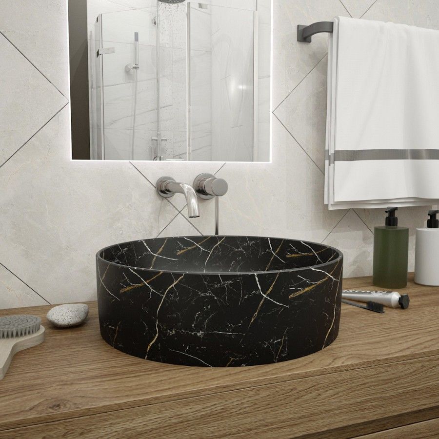 Раковина чаша Maretti EA13NS10-560MR, черный мрамор. Материал: санфарфор. Размер: 41x41x14. Форма: круглая.