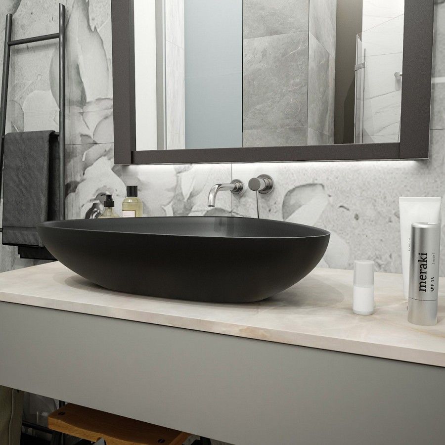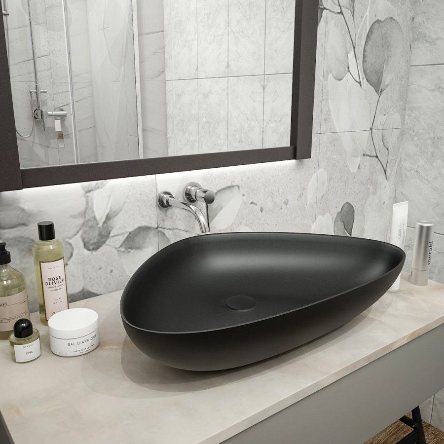 Раковина чаша Maretti EL13NS56-560, черная. Материал: санфарфор. Размер: 59x39x13. Форма: овальная.