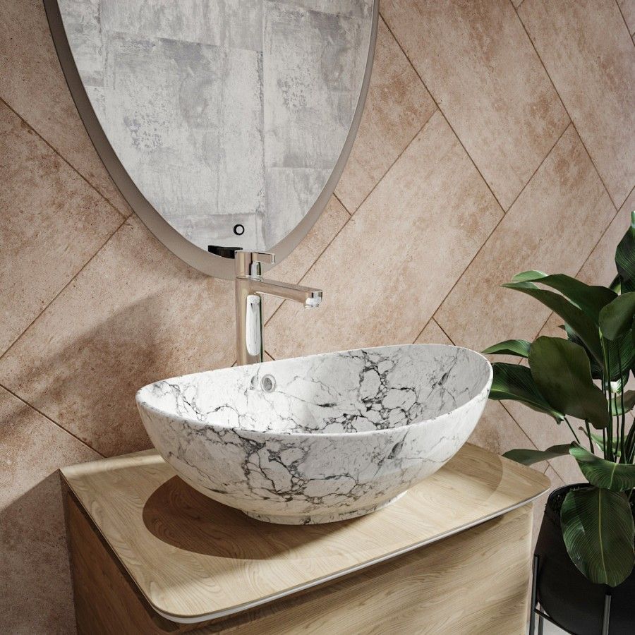 Раковина чаша Maretti EN13NS48-740MR, белый мрамор. Материал: санфарфор. Размер: 59x39x19,5. Форма: овальная.
