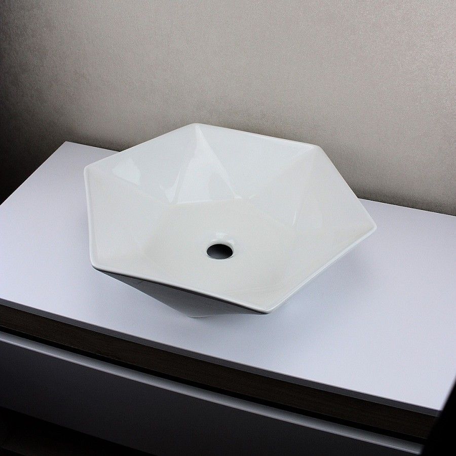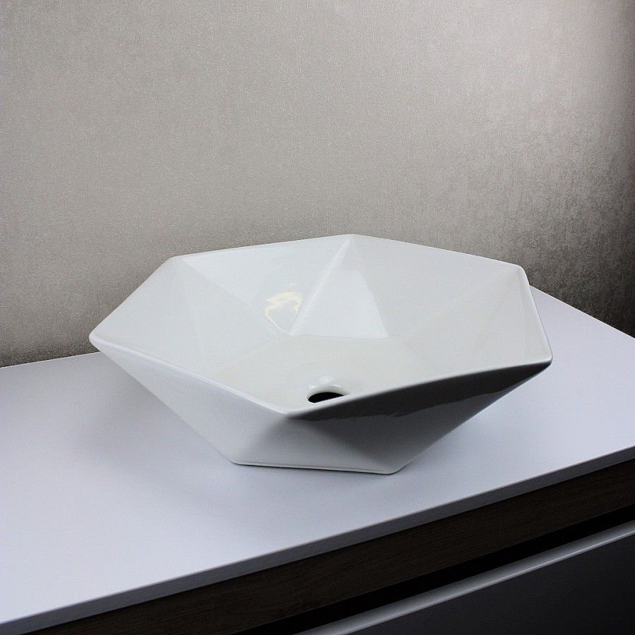 Раковина чаша Maretti GE13NS16-844, белая. Материал: санфарфор. Размер: 42x48x12. Форма: нестандартная (угловатая, шестиугольная).