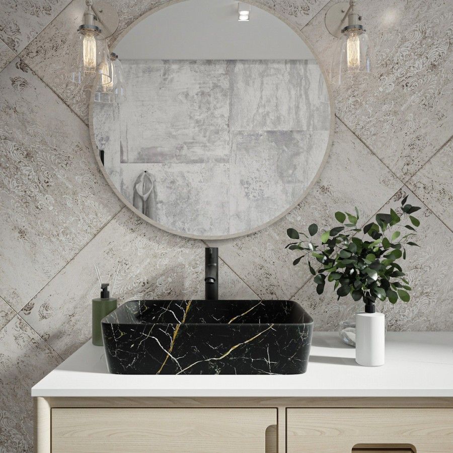 Раковина чаша Maretti UM13NS03-560MR, черный мрамор. Материал: санфарфор. Размер: 37x47,5x14. Форма: прямоугольная.