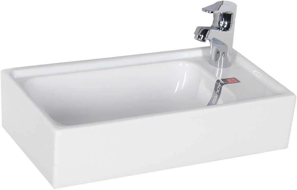 Если вы столкнулись в проблемой подбора раковины для узкого санузла, то вам на помощь придет компактная прямоугольная модель раковины для тумбы Sanovit Top Counter с полувстраиваемой установкой. Она идеально повторяет черты тумбочки. Кроме этого, для удобства выход для смесителя расположен сбоку, чтобы вода равномерно стекала в сливное отверстие и не разбрызгивалась по бортикам. Размеры 500х265 мм помогают тумбочке дополнить узкое пространство туалета или ванной, не потеряв собственной функциональности. Чаша глубокая, поэтому при закрытии донного клапана в нее можно набрать воды для купания домашних животных или для стирки вещей.