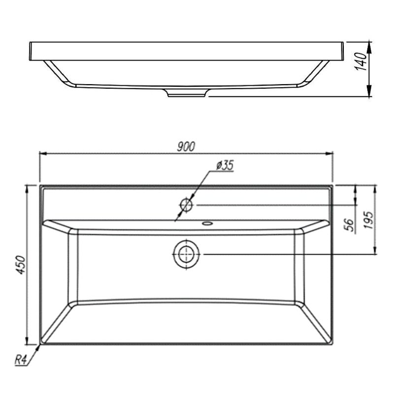 Раковина АСТОРИЯ 900. Размер: 900х450х140 мм.