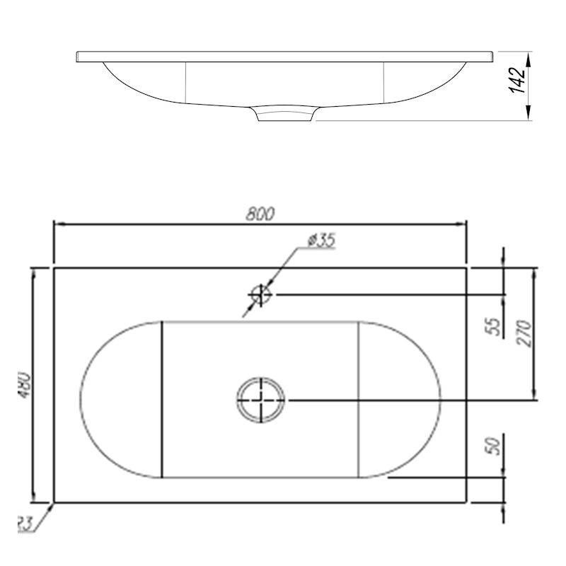 Раковина ГАВАНА 800. Размер: 800х480х142 мм.