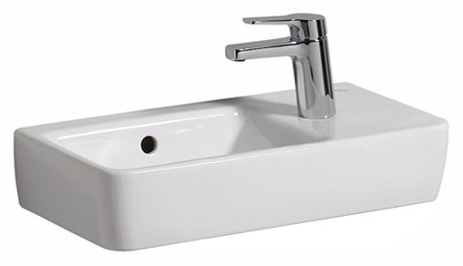 Раковина Geberit (Keramag) Renova Nr. 1 276250000. Монтаж подвесной. С 1-м отверстием для смесителя, расположенным справа. С 1-м отверстием перелива. С полочкой справа. Вес 8,4 кг. Цвет белый. Ширина 50 см. Глубина 25 см. Высота 15 см. Форма прямоугольная. Материал керамический фаянс.