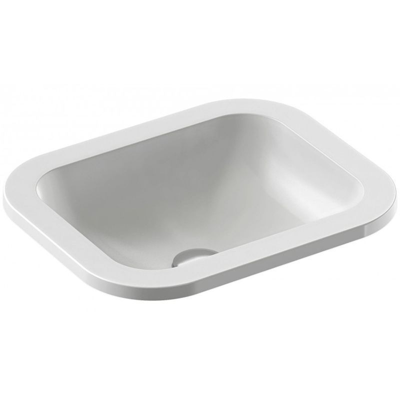 Раковина Jacob Delafon Vox 44 EYD102-00 прямоугольной формы, с переливным отверстием в передней части.