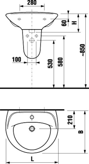 Раковина Jika Lyra 55 1427.1.000.104.9 с отверстием для смесителя.