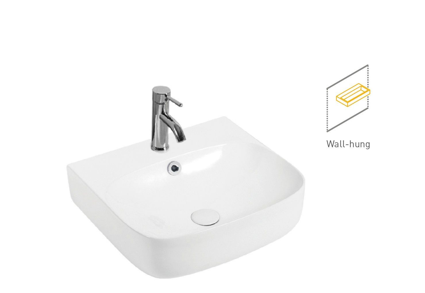 Раковина керамичекая накладная для установки на столешницу с отверстием под смеситель и переливом