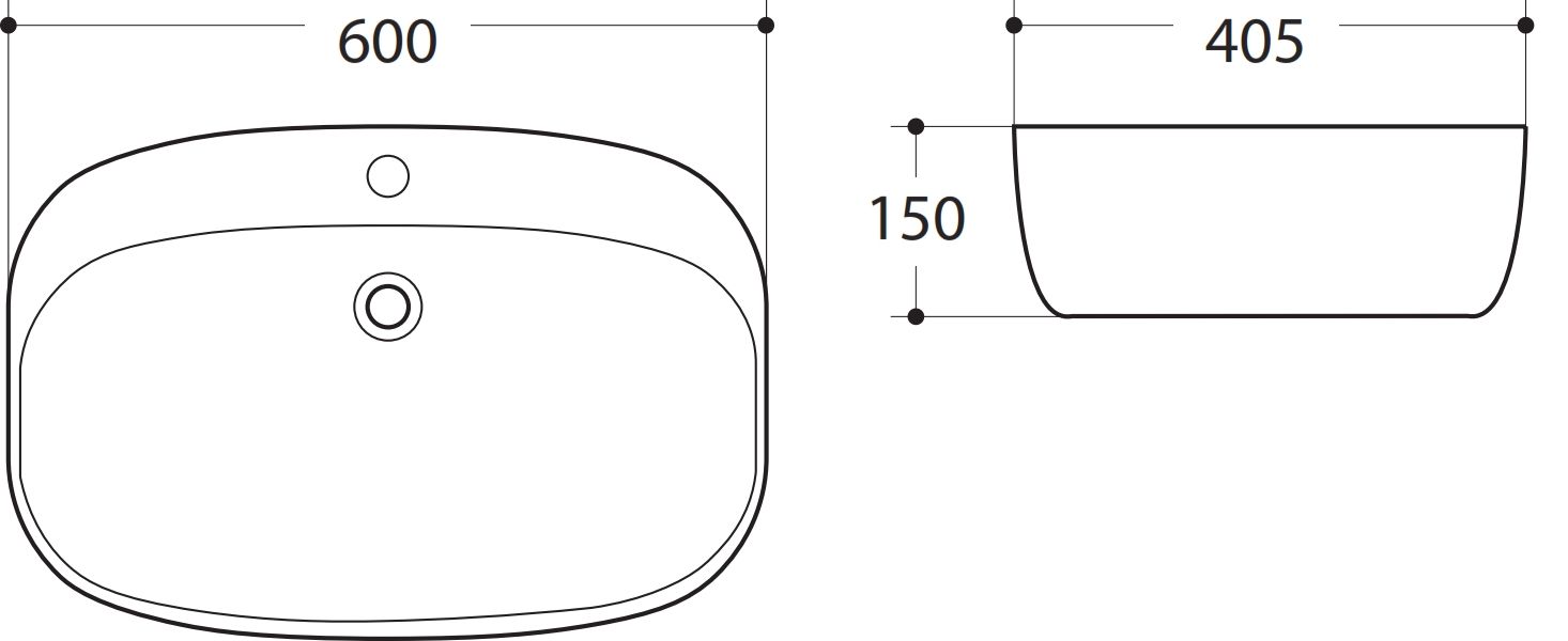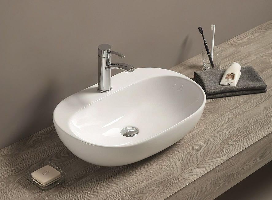 Раковина керамичекая накладная для установки на столешницу с отверстием под смеситель