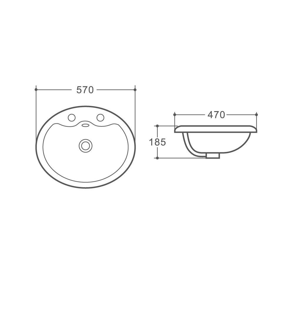 Раковина керамичеcкая полувстраиваемая с отверстием под смеситель и переливом